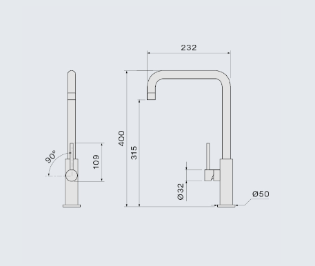 - Sposób instalacji: Wylewka w kształcie U kwadratowa