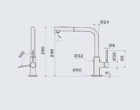 - Wymiary: Single-lever sink mixer with swive spout and pul l out hand shower 3/8” female connection hoses cm