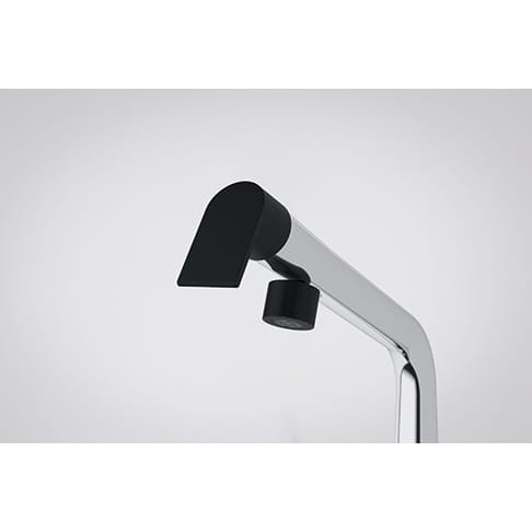 Model ze stałą wylewką zapewnia komfort codziennego użytkowania dzięki niestandardowemu umieszczeniu mieszacza, a nowoczesny aerator daje zwarty strumień laminarny, który w znacznej mierze eliminuje rozpryski.