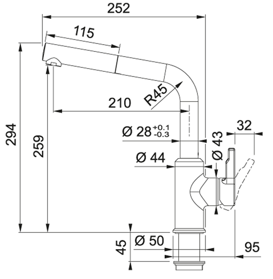 - Zakres ruchu dźwigni mieszacza 10/80