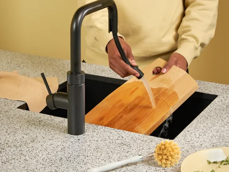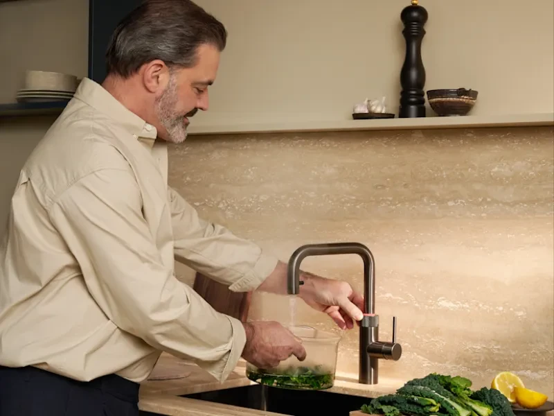 „Wyobraź sobie kran, który dzień zaczyna szybciej niż Ty — błyskawicznie podaje wrzącą wodę 100 °C, ciepłą i zimną, wszystko z jednego eleganckiego punktu przy zlewie. Dzięki elastycznej, wysuwanej wylewce każdy garnek, warzywo czy zlew myjesz z precyzją i lekkością, jakiego nie znałeś wcześniej. Gdy dźwigasz ją do siebie — woda gorąca jest automatycznie odłączona, a bezpieczeństwo jest zawsze na pierwszym miejscu"