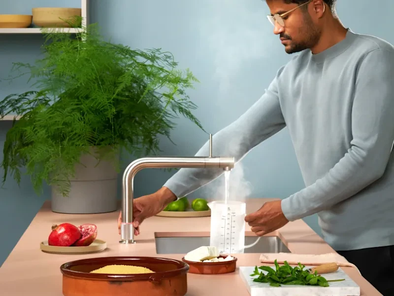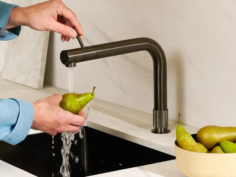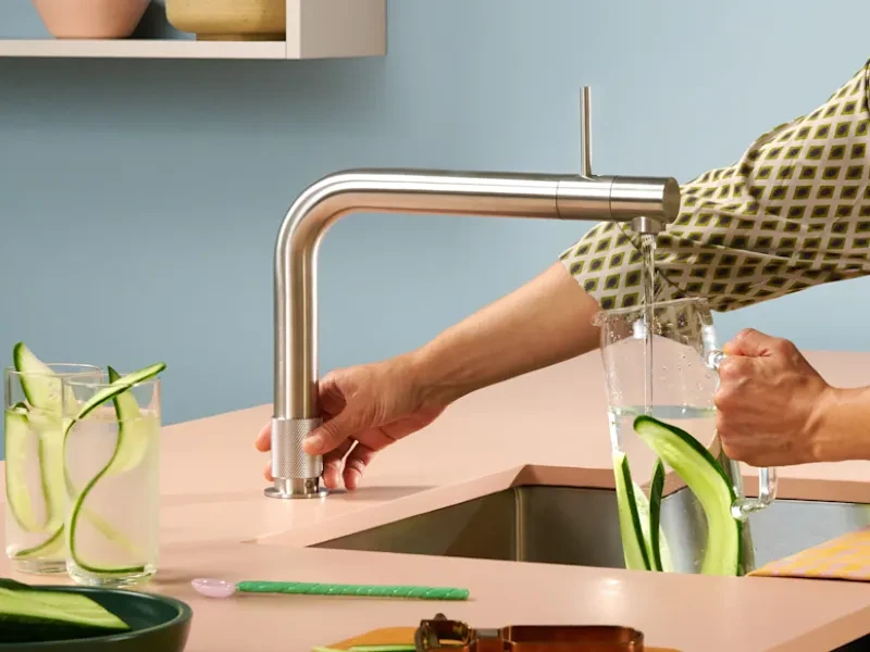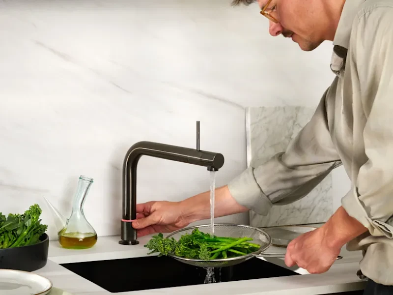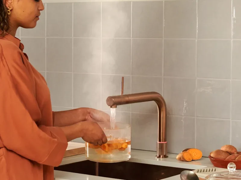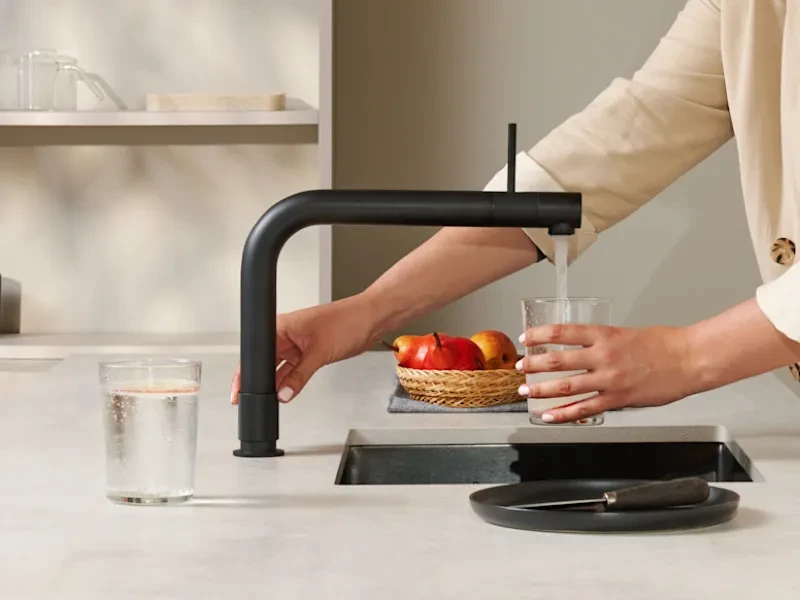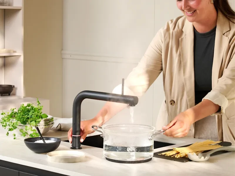 „Wyobraź sobie kran, który dzień zaczyna szybciej niż Ty — błyskawicznie podaje wrzącą wodę 100 °C, ciepłą i zimną, wszystko z jednego eleganckiego punktu przy zlewie."