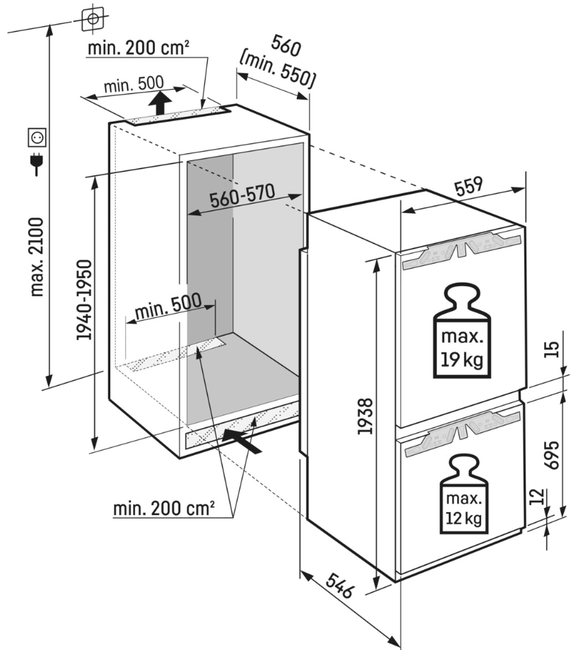 CHŁODZIARKO-ZAMRAŻARKA DO ZABUDOWY Z SYSTEMEM NOFROST LIEBHERR ICNd 5603 PURE