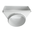 Plastikowe, sztywne kolanko przejściówka, łączące i zmieniające przebieg i profil rury z okrągłej o średnicy 150 mm , na prostokątną o wymiarach 220x90 mm. Stosowane do łączenia rur, odprowadzających opary powstające podczas gotowania z komory silnikowej do kanału wentylacyjnego.