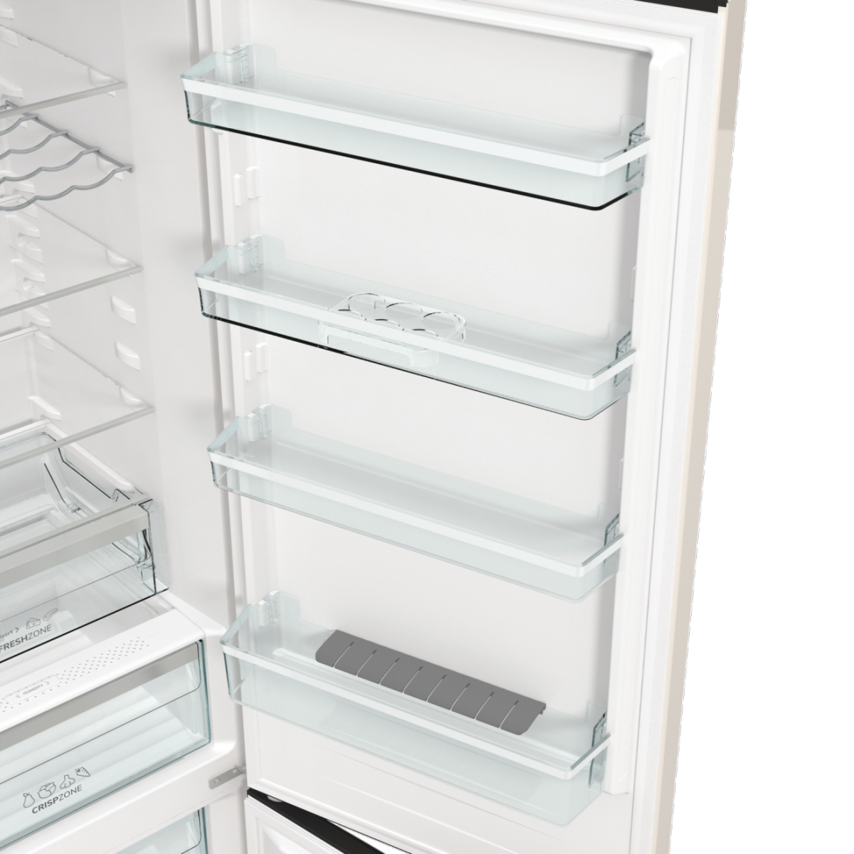 - Profilowana półka na butelki z funkcją zapobiegania wypadaniu butelek