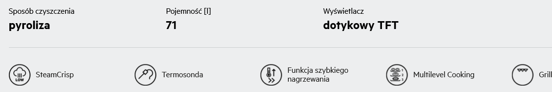 - Tryby gotowania: termoobieg + para
