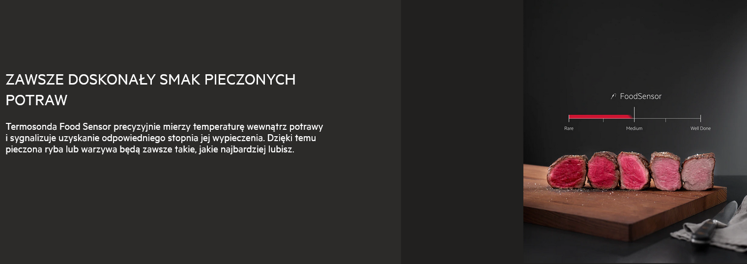 - Funkcje: Au Gratin, grzanie dolne, pieczenie chleba, konwencjonalne/tradycyjne pieczenie, rozmrażanie, wyrastanie ciasta, suszenie, zamrożone potrawy, grill, mała wilgotność, utrzymywanie ciepła, nawilżanie, pizza, ogrzewanie talerzy, utrzymywanie temperatury, powolne gotowanie, regeneracja parowa , termoobieg, grillowanie turbo