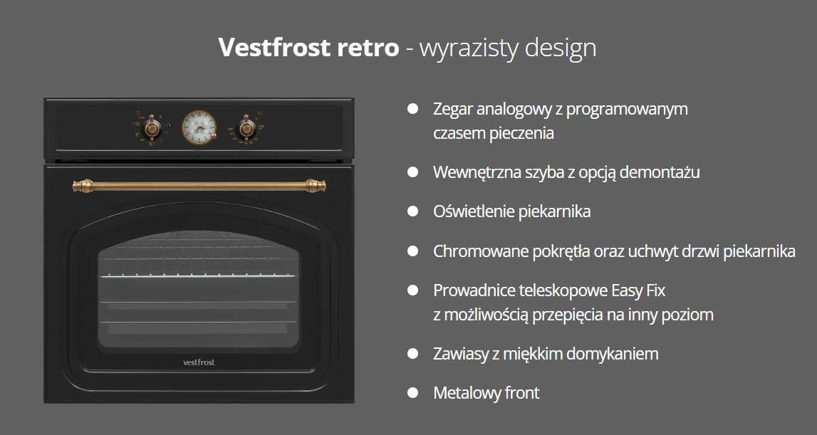 PIEKARNIK DO ZABUDOWY VESTFROST RETRO CZARNY VO-65W19MAVMB