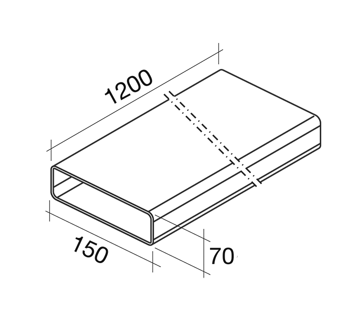 Plastikowa, sztywna rura prostokątna o wymiarach 150x70 mm i długości 1200 mm. Rury stosowane do odprowadzania oparów powstających podczas gotowania z komory silnikowej do kanału wentylacyjnego.