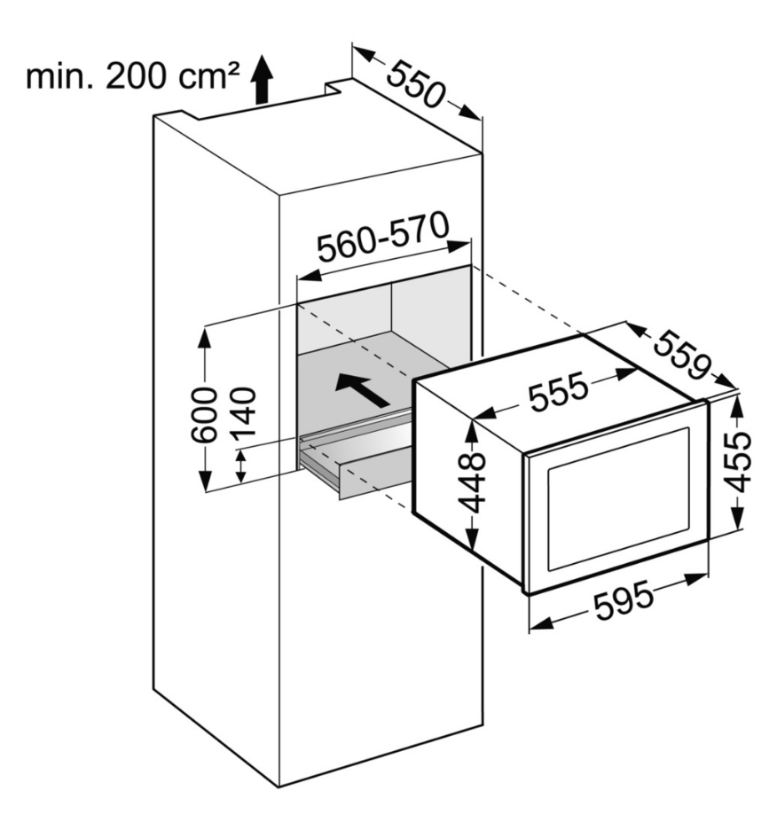 - Wymiary wnęki wysokość/szerokość/głębokość: 45 - 45,2 / 56 - 57 / 55,0 cm