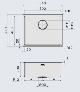 - Wycięcie [mm] 542x442/ 530x430/ 501x401