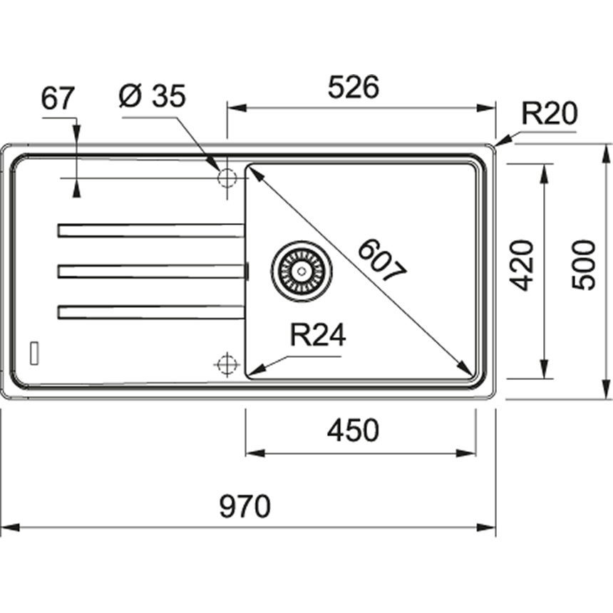 - Wymiary zewnętrzne [mm] 970x500