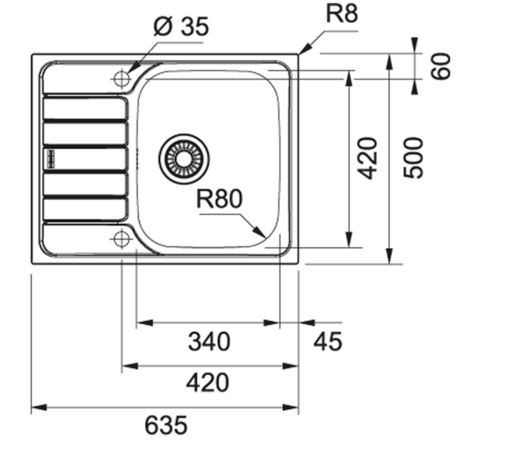 - Szerokość dużej komory 420,00 mm