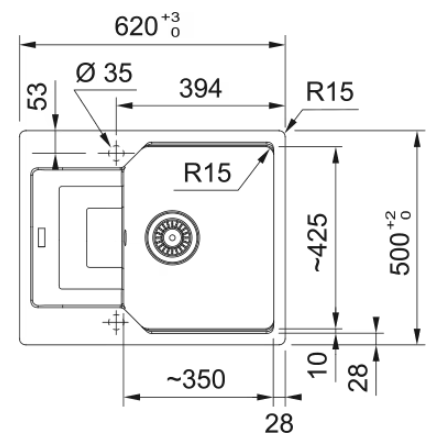 - Wycięcie [mm] 600x480