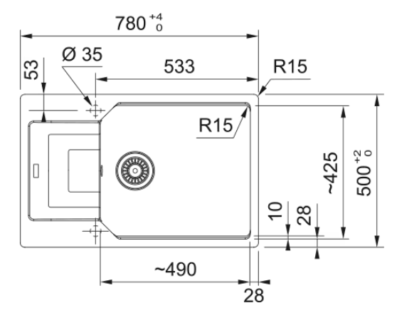 - Wycięcie [mm] 744x464