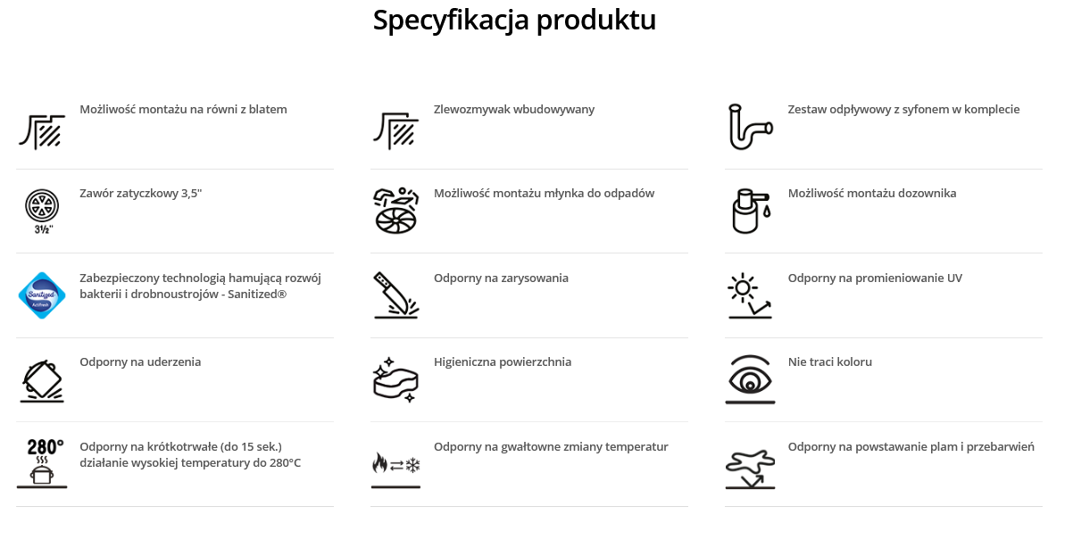 Odporny na zarysowania i przebarwienia a jednocześnie gładki i higieniczny.