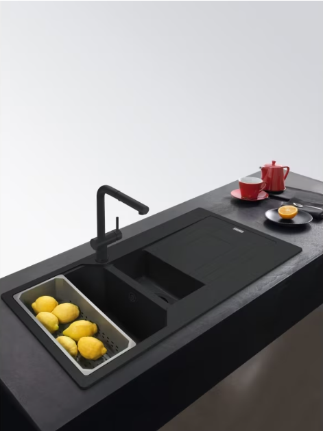 Zlewozmywak wbudowywany Urban UBG 651-100. Ten model w kolorze czarnego matu posiada odpływ we współgrającym kolorze tworząc harmonijną, monochromatyczną całość, która sprawi, że Twoja kuchnia nabierze głębi i oryginalnego sznytu. Materiał Fragranite, z którego został wyprodukowany ten model składa się w 80% z naturalnego granitu. Dzięki zastosowaniu bardzo drobnych cząsteczek granitu, uzyskano zlewozmywak idealnie gładki i delikatny w dotyku. Wszystkie fragranitowe zlewozmywaki Franke, wyprodukowane są z wykorzystaniem technologii Sanitized®. Zawierają zatem szkło fosforanowe z dodatkiem srebra, ograniczającym rozwój bakterii do 99%. Co więcej, zlewozmywaki z materiału Fragranite są odporne na zarysowania, uderzenia i zaplamienie, a ich kolor nie zmienia się z upływem czasu. Są również odporne na krótkotrwałe działanie wysokiej temperatury (do 280°C przez 15 sek.). W przypadku montażu dodatkowych akcesoriów takich jak korek automatyczny, należy dokupić podkładkę dystansującą 133.0533.532.