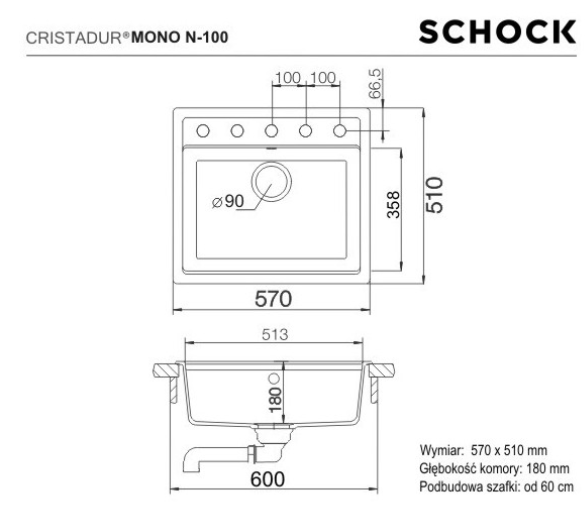 ZLEWOZMYWAK SCHOCK MONO N-100 Puro CRISTADUR