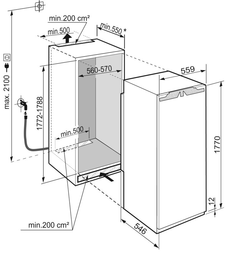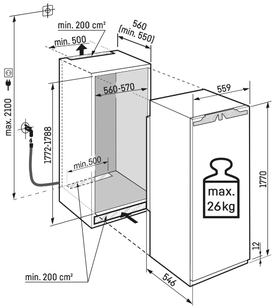 - Wymiary wnęki wysokość/szerokość/głębokość: 177,2 - 178,8 / 56 - 57 / 55,0 cm