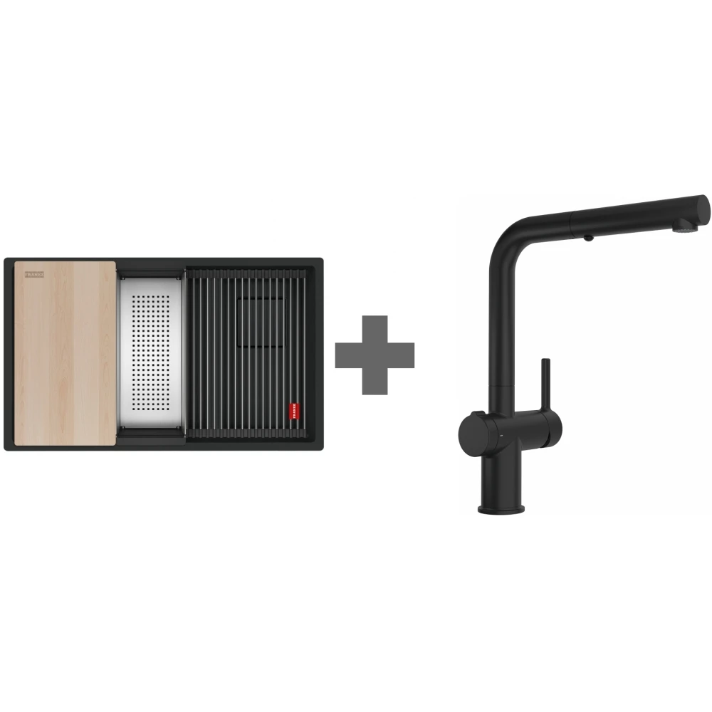 Zestaw Franke zlewozmywak Kanon Pro KNG PRO 160-46-21 Czarny mat z czarnymi odpływami oraz bateria kuchenna Active L Twist czarny mat