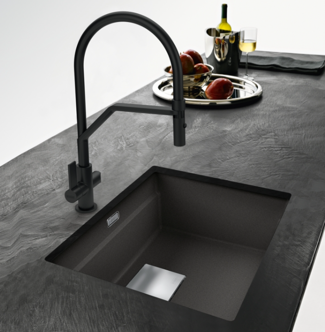 Do ich produkcji wykorzystujemy malutkie cząstki granitu, dzięki temu uzyskujemy niezwykle gładką i jednolitą, a przez to bardzo higieniczną powierzchnię, którą łatwo utrzymać w czystości